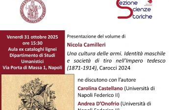 PRESENTAZIONE DEL CORSO DI STUDIO IN STORIA 29 settembre 2025 – ore 14:30 Il giorno 29 settembre 2025 alle ore 14.30, nell’aula DSU 3 del Dipartimento di Studi Umanistici, in Via Porta di Massa, 1, scala C, II piano, 4° livello, si svolgerà per gli immatricolati e immatricolandi dell’anno accademico 2025-2026 la presentazione del Corso di Studio in Storia, con riferimento all’articolazione dei suoi corsi. È consigliabile prenotarsi per l’evento entro il 27 settembre tramite mail al coordinatore del CdS, prof. D’Onofrio, andonofr@unina.it . Per chi ne faccia espressa richiesta tramite mail al prof. D’Onofrio, l’evento potrà essere seguito anche a distanza su piattaforma telematica Teams: Presentazione CdS in Storia…