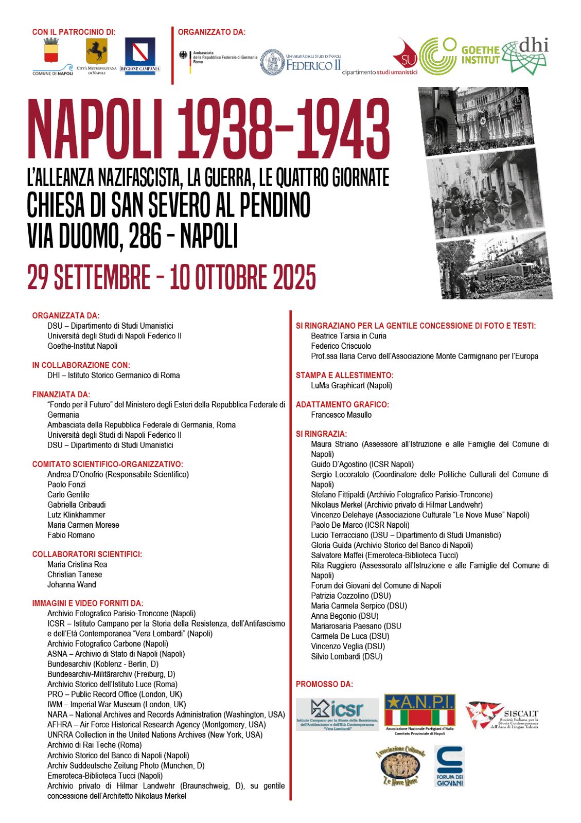 Mostra storico-documentaria: NAPOLI 1938-1943. L’alleanza nazifascista, la guerra, le Quattro Giornate 28 Settembre 2025 COLOPHON MOSTRA