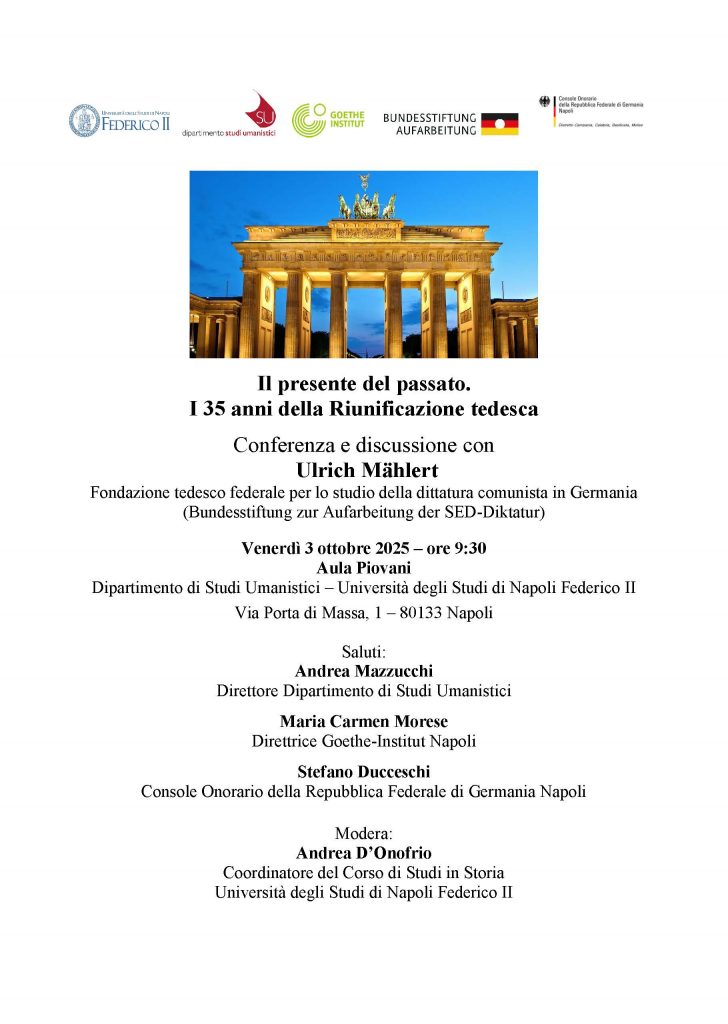 Il presente del passato. I 35 anni della Riunificazione tedesca 29 Settembre 2025 Conferenza e discussione con Ulrich Mählert